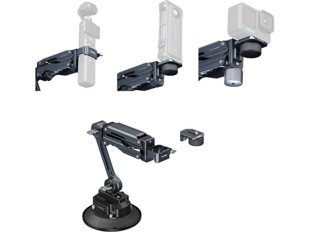 SmallRig 5507 Tlumicí podpěra s elektronickou přísavkou pro Osmo Pocket 3 / HERO13 a další Rameno je vybaveno knoflíkem pro nastavení tlumení, aby se přizpůsobilo různým podmínkám na silnici, a je tak vhodné pro náročné prostředí pro natáčení. Rameno tlumiče se páruje s 5palcovou elektronickou přísavkou, která automaticky monitoruje podtlak a při poklesu úrovně tlaku pod 75 % aktivuje funkci jeho automatického doplňování, čímž průběžně obnovuje optimální 100% přilnavost.Rameno tlumiče s nosností 600 g je vhodné pro většinu běžných akčních kamer. Je dodáváno s protiprachovým krytem, který chrání před poškrábáním a prodlužuje jeho životnost. Dodatečně obsahuje pevné pouzdro pro bezpečné uložení a snadné přenášení.Poznámka:Přísavka by se měla používat pouze na hladkých, suchých a rovných površích. Nepoužívejte ji na drsných, mokrých, nerovných, špinavých, křehkých nebo choulostivých površích.  Při používání mimo vozidlo ji zajistěte bezpečnostním popruhem, udržujte rychlost pod 100 km/h, před použitím zkontrolujte sací výkon a každé 2 hodiny ji zkontrolujte.Elektrickou přísavku používejte v prostředí s teplotou od -25 °C do 60 °C. Poutka nejsou součástí dodávky a v případě potřeby je lze zakoupit samostatně.Kompatibilita:Kompatibilní s akčními kamerami vybavenými otvorem se závitem 1/4"-20 ve spodní části, jako jsou DJI Osmo Pocket 3, GoPro HERO13 Black a Insta360 X4 / X3.Kompatibilní s akčními kamerami s klecí (vybavenou otvorem se závitem 1/4"-20), jako jsou GoPro HERO12 Black, HERO11 Black, HERO10 Black, HERO9 Black a DJI Osmo Action 5 Pro / 4 / 3.Balení obsahuje:Podpěra tlumiče nárazůElektronická přísavkaKryt proti prachu z přísavkyProdlužovací ramenoAdaptérMontážní deskaPřepážkaAlenový klíčUložná taška2x návod k obsluze.Doplňkové parametry