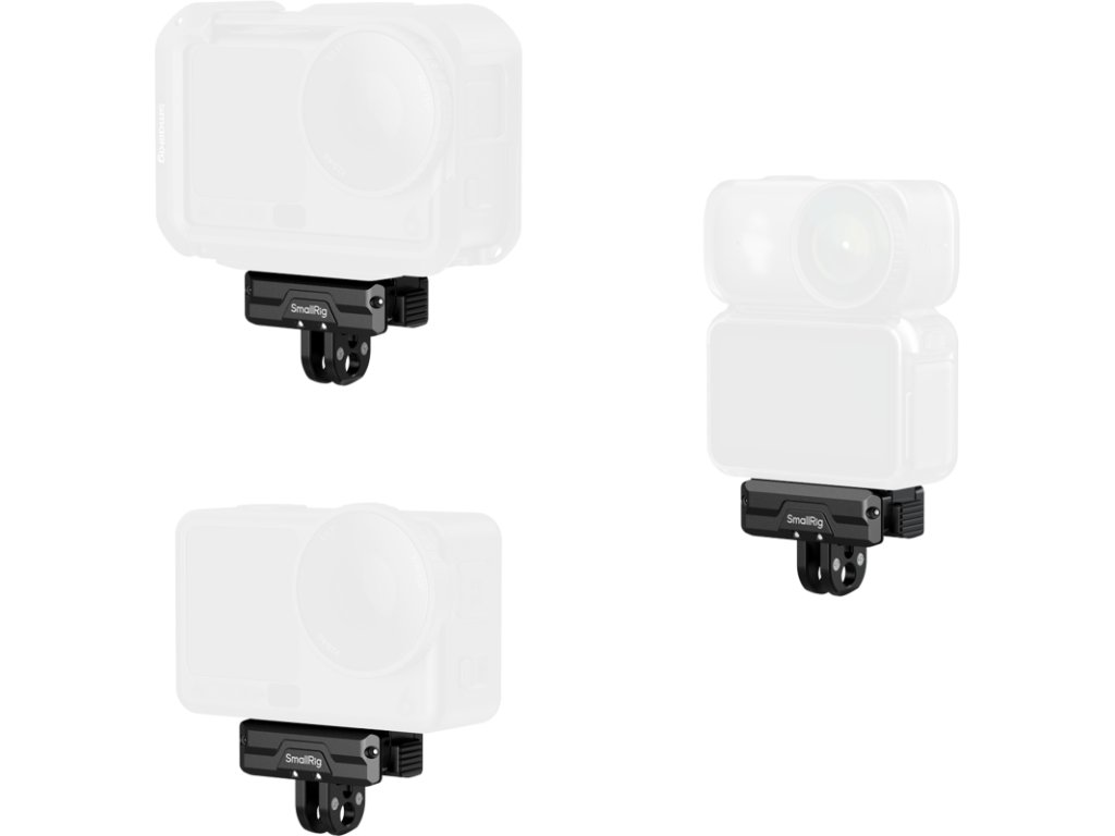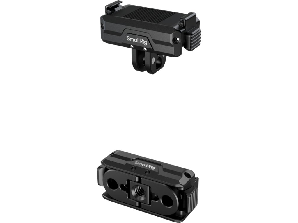 SmallRig 5890 Obousměrný sklopný adaptér s rychloupínáním, 2bodovým uchycením a závitovým otvorem 1/4"-20Je vyroben z odolné hliníkové slitiny, která zajišťuje spolehlivý výkon. Základna je vybavena závitovým otvorem 1/4"-20 pro snadné připevnění ke stativům, selfie tyčím, přísavkám, svorkám na řídítka a dalšímu příslušenství. Základna také obsahuje skládací 2-bodový držák pro širokou kompatibilitu s příslušenstvím pro akční kamery.Poznámka:Při použití magnetického adaptéru se ujistěte, že je pevně připevněn k kameře a že jsou oba zámky zapojeny, než jej připevníte ke stativům, selfie tyčím nebo jinému příslušenství.Magnetický adaptér nepoužívejte v mořské vodě, protože není vodotěsný, odolný vůči kyselinám ani korozi.Kompatibilita:DJI Osmo Action 6 a odpovídající kleceDJI Osmo NanoBalení obsahuje:Podpora adaptéruDoplňkové parametry