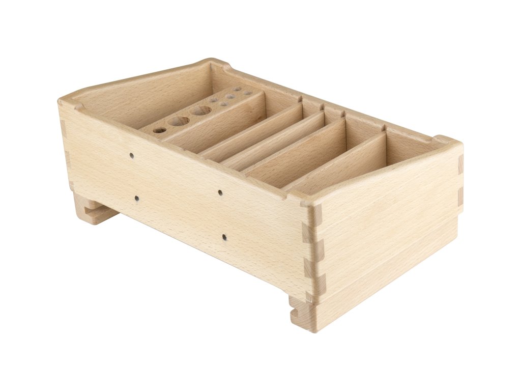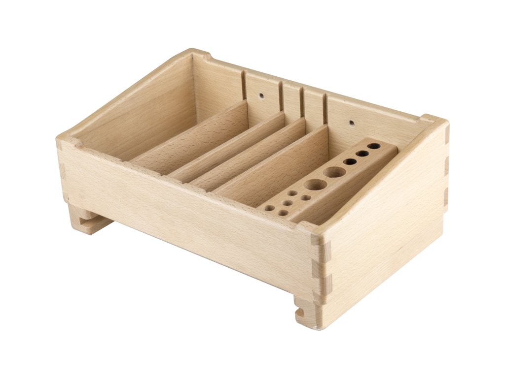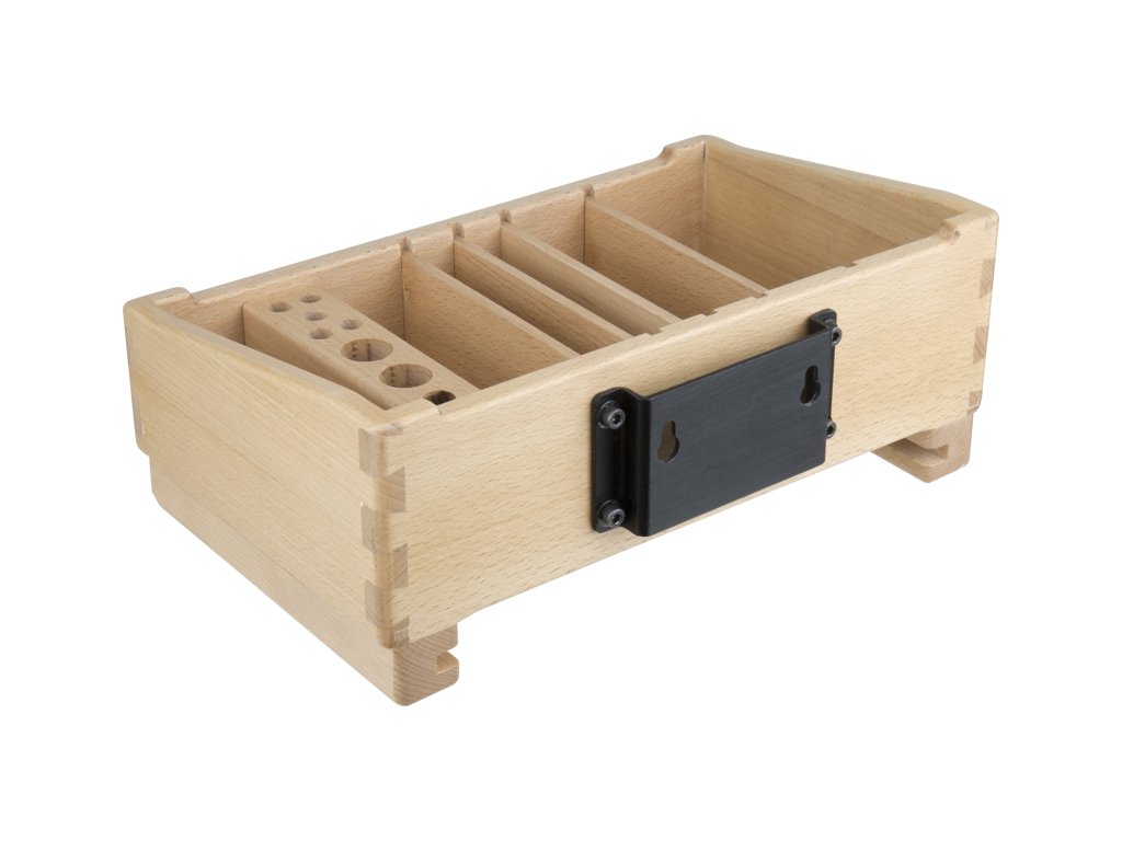 Držák Kupo Front Box, který na scéně obvykle používá druhý pomocný kameraman, lze připevnit ke stativu nebo stojanu pro vysoké zatížení (pomocí uchycení Convi Clamp a montážní destičky Front Box pro uchycení Convi Clamp) k položení předmětů, jako jsou popisovače, čisticí prostředky, nástroje a standardní filmová klapka. K dispozici je samostatně také podpěra pro držák Front Box k montáži na fluidní hlavu.Držák Kupo Camera Assistant Front Box je vyroben z vysoce kvalitního evropského buku a dodává se s přirozenou povrchovou úpravou. Je vybaven čtyřmi odnímatelnými a vyměnitelnými přepážkami k přizpůsobení konkrétním potřebám. Držák Camera Assistant Front Box je vybaven také držákem na pera, který je v pevné poloze a nabízí různě velké otvory pro pera a nezbytné kinematografické nástroje. Sloty na spodní straně držáku Front Box pohodlně drží filmovou klapku standardní velikosti.Určený k připevnění na stativu k podržení nezbytných předmětůVyrobený z vysoce kvalitního evropského buku, dodán s přirozenou povrchovou úpravouVybavený čtyřmi odnímatelnými a vyměnitelnými přepážkamiSloty na spodní straně držáku Front Box určené k držení filmové klapky standardní velikosti