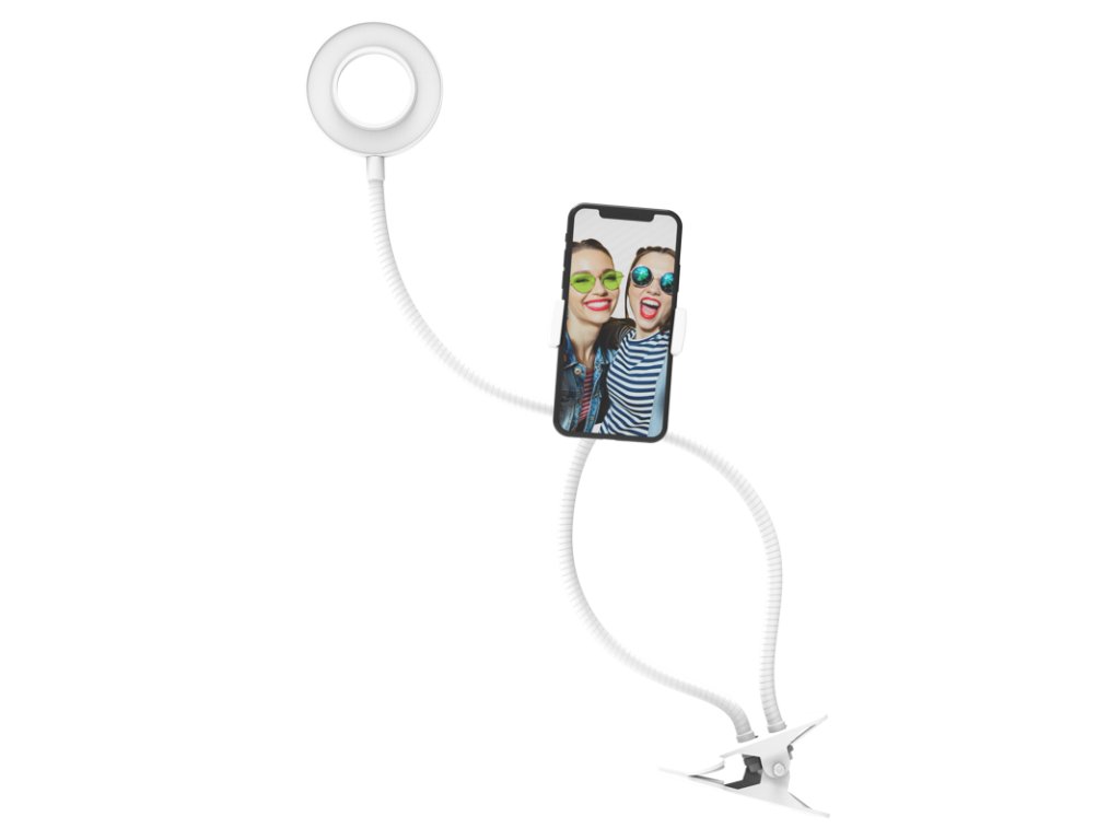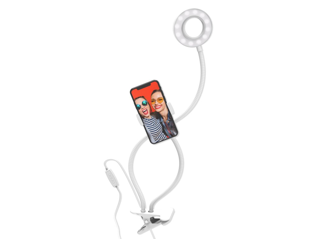 Kruhové světlo o úhlopříčce 3" je vybaveno 3 nastavitelnými barevnými teplotami a možností nastavení 10 úrovní jasu , které vám pomohou najít perfektní osvětlení pro každou situaci. 360° otočný držák pro smartphone , který vám umožní vybrat si perfektní úhel záběru. Světlo je napájeno z USB po připojení k powerbance, síťové nabíječce nebo přímo z počítače. Ultra silná svorka se bezpečně připevní k nábytku, jako jsou pracovní stoly, konferenční stolky atd.Kruhové světlo z této sady je také kompatibilní se všemi typy smartphonů . Smartphone není potřeba vyjímat z pouzdra, tudíž je jeho použití i nastavení aplikace opravdu jednoduché. Hlavní vlastnosti: -3 režimy barevné teploty – studená, neutrální, teplá-10 režimů intenzity výkonu světla-Dálkový ovladač pro iOS a Android-USB napájení – například z powerbanky, síťové nabíječky pro smartphone, přímo z počítače atd.Doplňkové parametry