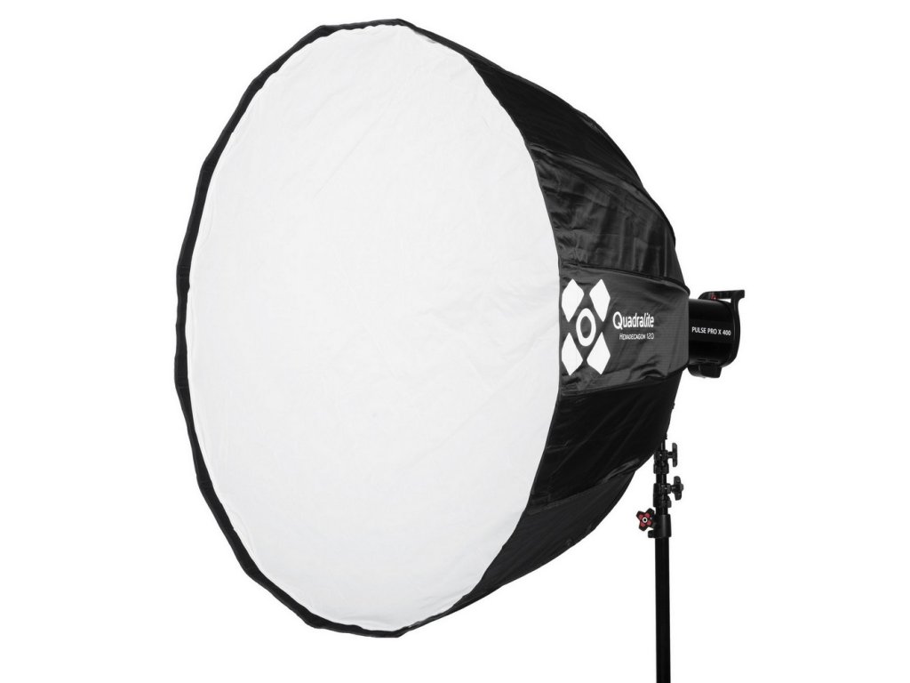 Rám softboxu je z hliníku, zatímco ocelové napínací tyče drží parabolický tvar a zajišťují stabilitu i při náklonu světla. Softbox je vybaven univerzálním uchycením typu Bowens, které je kompatibilní s většinou studiových a externích blesků, včetně těch od Quadralite. Pomocí adaptérů je možné jej připojit také na systémy Broncolor, Profoto nebo Elinchrom.