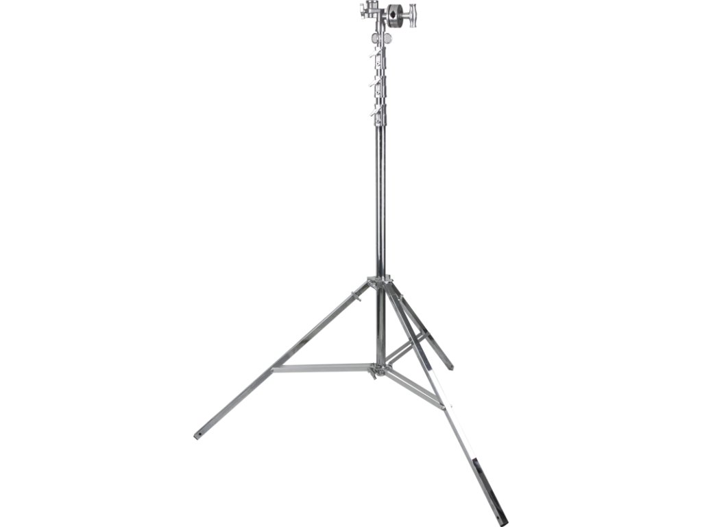 Součástí stojanu je také jedna noha s prodlouženým vysunutím pro vyrovnání na nerovném terénu. Stojan má skládací základnu, 2 vyrovnávací nohy a 3 zavětrovávací prstencové kroužky.Jednotlivé výsuvné části jsou pružinově odpruženy jako bezpečnostní opatření k zabránění náhlému spadnutí vybavení Je vybaven kombinovanou hlavou s gripovou hlavou 4 1/2" (11,4 cm) s čepem 1 1/8"(28 mm) a dutinkou.Široký půdorys pro mimořádnou stabilitu, vhodný k připevnění nadhlavních rámů, jedna noha s prodlouženým vysunutím pro vyrovnání na nerovném terénuSkládací základna, 2 vyrovnávací nohy a 3 zavětrovávací prstencové kroužkyVýsuvné části s pružinovým odpružením k zajištění bezpečnostiKombinovaná hlava s gripovou hlavou 4 1/2" (11,4 cm) s čepem 1 1/8" (28 mm) a dutinkouMax. nosnost: 40 kg, max. výška: 6,33 m