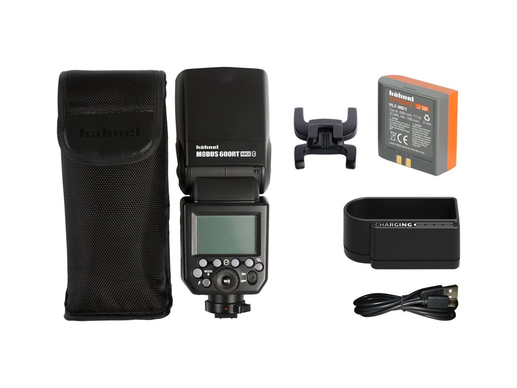 Hähnel Modus 600RT MK II je výkonný blesk, který je napájený vysokokapacitní Li-Ion baterií Hähnel Extreme a disponuje vestavěným 2,4 GHz bezdrátovým vysílačem a přijímačem s dosahem 100 metrů.Oproti jiným bleskům má Modus 600RT MK II velmi rychlý obnovovací čas mezi záblesky - pouhých 1,5 sekundy na plný výkon, což je 4x rychlejší než u blesků napájených AA bateriemi. Při plně nabitém akumulátoru je blesk schopen zajistit až 600 záblesků na plný výkon a 1000 záblesků na výkon poloviční.Oproti původnímu modelu Modus 600RT je navíc vybaven držákem sáněk blesku s rychlým uzamykaním na spodní straně.Hlavní vlastnosti:Unikátní bezdrátové spojeníJednoduché ovládání pomocí LCD displejeSměrné číslo GN: 60 (ISO 100 / 200 mm)Blesky jiných výrobců mohou s tímto bleskem komunikovat přes ovladač Hähnel Viper TTLVysokorychlostní synchronizace na 2.lamelu až do 1/8000 vteřinyRozsah zoomu (automaticky/manuálně): 20 - 200 mmRežim blesku: TTL / Manuální / Multi (stroboskopický)Možnost aktualizace firmwaru pomocí vstupu USBUltra kompaktní USB nabíječkaIntegrovaný držák sáněk bleskuTechnické specifikace:Hlava blesku: otočná o 360° výklopná od -7° do 90°Doba hoření: 1/300 až 1/20000 sBarevná teplota: 5600K ± 200KEfektivní dosah pomocného AF: ve středu 0,6 - 10 m, v krajích 0,6 - 5 mKorekce expozice blesku: 3 EV po 1/3 krocíchVysokorychlostní synchronizace: 1/8000 s na první i druhou lameluBezdrátové řízení blesku: optické (IR) s efektivním dosahem v exteriéru do 10 mOptické ovládání: 3 skupiny, 4 kanályBezdrátové řízení blesku: rádiové 2,4 GHz s dosahem 100 mRadiové ovládání: 5 skupinStrobo: maximálně 100 záblesků, maximální frekvence 199 HzModelační záblesk: aktivace přes tlačítko hloubky ostrosti na fotoaparátuHmotnost bez baterie: 430 gHmotnost s baterií: 540 gObsah balení:Blesk Modus 600RT MK IIUltra kompaktní USB nabíječka MD1Baterie Extreme HLX-MD1USB kabelPouzdro a stojánekreme HLX-MD1 USB kabel Pouzdro a stojánekDoplňkové parametry