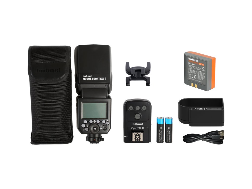 Hähnel Modus 600RT MK II je výkonný blesk, který je napájený vysokokapacitní Li-Ion baterií Hähnel Extreme a disponuje vestavěným 2,4 GHz bezdrátovým vysílačem a přijímačem s dosahem 100 metrů.Oproti jiným bleskům má Modus 600RT MK II velmi rychlý obnovovací čas mezi záblesky pouhých 1,5 sekundy na plný výkon, což je 4x rychlejší než u blesků napájených AA bateriemi. Při plně nabitém akumulátoru je blesk schopen zajistit až 600 záblesků na plný výkon a 1000 záblesků na výkon poloviční.Oproti původnímu modelu Modus 600RT je navíc vybaven držákem sáněk blesku s rychlým uzamykaním na spodní straně. Hlavní vlastnosti: Unikátní bezdrátové spojení Jednoduché ovládání pomocí LCD displeje Směrné číslo GN: 60 (ISO 100 / 200 mm) Blesky jiných výrobců mohou s tímto bleskem komunikovat přes ovladač Hähnel Viper TTL Vysokorychlostní synchronizace na 2.lamelu až do 1/8000 vteřiny Rozsah zoomu (automaticky/manuálně): 20 200 mm Režim blesku: TTL / Manuální / Multi (stroboskopický) Možnost aktualizace firmwaru pomocí vstupu USB Ultra kompaktní USB nabíječka Integrovaný držák sáněk blesku Technické specifikace: Hlava blesku: otočná o 360° výklopná od -7° do 90° Doba hoření: 1/300 až 1/20000 s Barevná teplota: 5600K ± 200K Efektivní dosah pomocného AF: ve středu 0,6 10 m, v krajích 0,6 5 m Korekce expozice blesku: 3 EV po 1/3 krocích Vysokorychlostní synchronizace: 1/8000 s na první i druhou lamelu Bezdrátové řízení blesku: optické (IR) s efektivním dosahem v exteriéru do 10 m Optické ovládání: 3 skupiny, 4 kanály Bezdrátové řízení blesku: rádiové 2,4 GHz s dosahem 100 m Radiové ovládání: 5 skupin Strobo: maximálně 100 záblesků, maximální frekvence 199 Hz Modelační záblesk: aktivace přes tlačítko hloubky ostrosti na fotoaparátu Hmotnost bez baterie: 430 g Hmotnost s baterií: 540 g Obsah balení: Blesk Modus 600RT MK II Vysílač Viper TTL Ultra kompaktní USB nabíječka MD1 Baterie Extreme HLX-MD1 USB kabelDoplňkové parametry