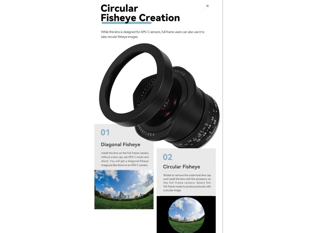 Přestože je tento objektiv určen pro snímače APS-C, mohou jej uživatelé fullframe použít i k pořizování snímků s kruhovým rybím okem.