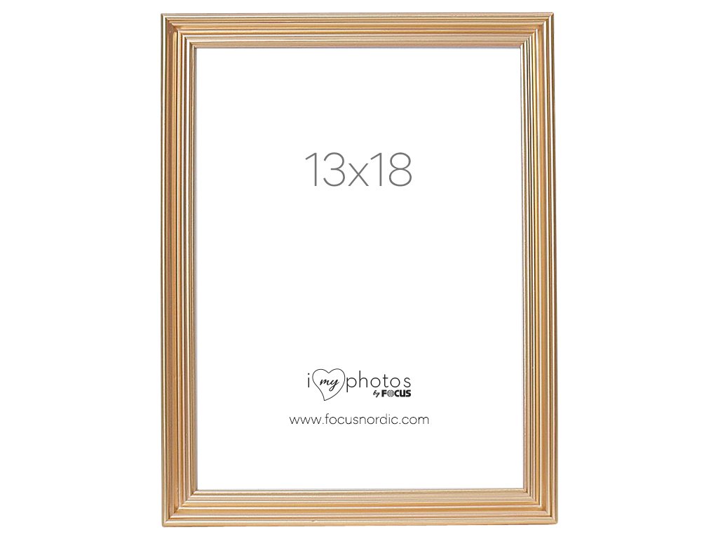 Zlatý obrouček s klasickým a profilovaným stylem. Obrouček je vyrobený z plastu a má tenký profil. Rámeček se dodává se skutečným sklem, které na fotografiích zvýrazní to nejlepší. Se stojánkem vzadu, který umožňuje umístit rámeček na polici nebo stůl. Profil rámečku má hloubku 14.3 mm a šířku 15.2 mm. Velikost obrázku v rámečku je 13x18 cm.Výběr správného rámečku dodá vašim obrázkům další rozměr. Rámečky Focus vylepší obsah, ať již rámujete pěkný plakát nebo vytváříte stěnu s fotografiemi z dovolené. Proto jsme na naši širokou řadu rámečků hrdí. Máme něco pro každého – ať se vám líbí klasické rámečky, nebo ať chcete rámeček, díky kterému váš snímek vynikne a dodá vašemu interiéru další rozměr.Doplňkové parametry